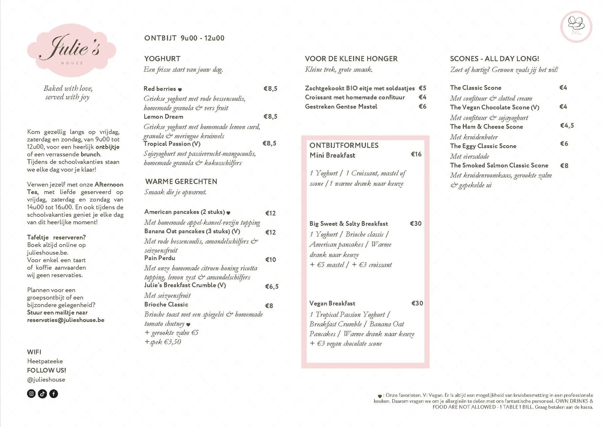 Zoek je een ontbijtplekje dat net dat tikkeltje meer heeft dan de gewone ontbijtbar? Dan ben je bij Julie's House aan het juiste adres! Van vrijdag tot en met zondag, en dagelijks tijdens de schoolvakanties, geniet je van een heerlijk ontbijt met een zoete knipoog.